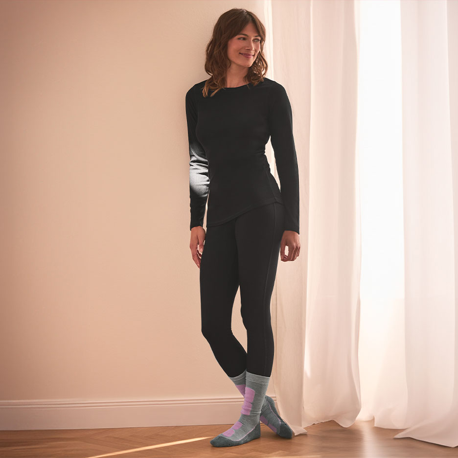 Lämpövaatteita käytetään ihanteellisesti kerroksittain. Tärkein on ensimmäinen kerros, joka on kosketuksessa vartalon kanssa. Esimerkiksi urheilualusvaatteet tai lämpöpaita istuvat täydellisesti ja peittävät ihon kokonaan. Kiinnitä huomiota hengittäviin kuituihin ja valitse oikea vaatekoko. Sade- tai tuulenpitävä pintakerros – esimerkiksi takki – voi olla hieman väljempi. Tässä kiinnität huomiota erityisesti hihansuiden istuvuuteen sekä sopivaan pituuteen vartalollesi ja aktiviteetteihisi. Älä unohda: suurin osa lämmöstä menetetään pään kautta – joten, pipo päähän!